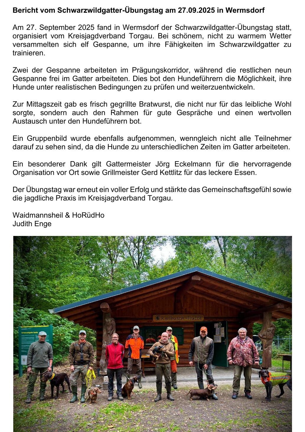 Bericht zum Übungstag im Schwarzwildgatter Seelitz am 27.09.2025