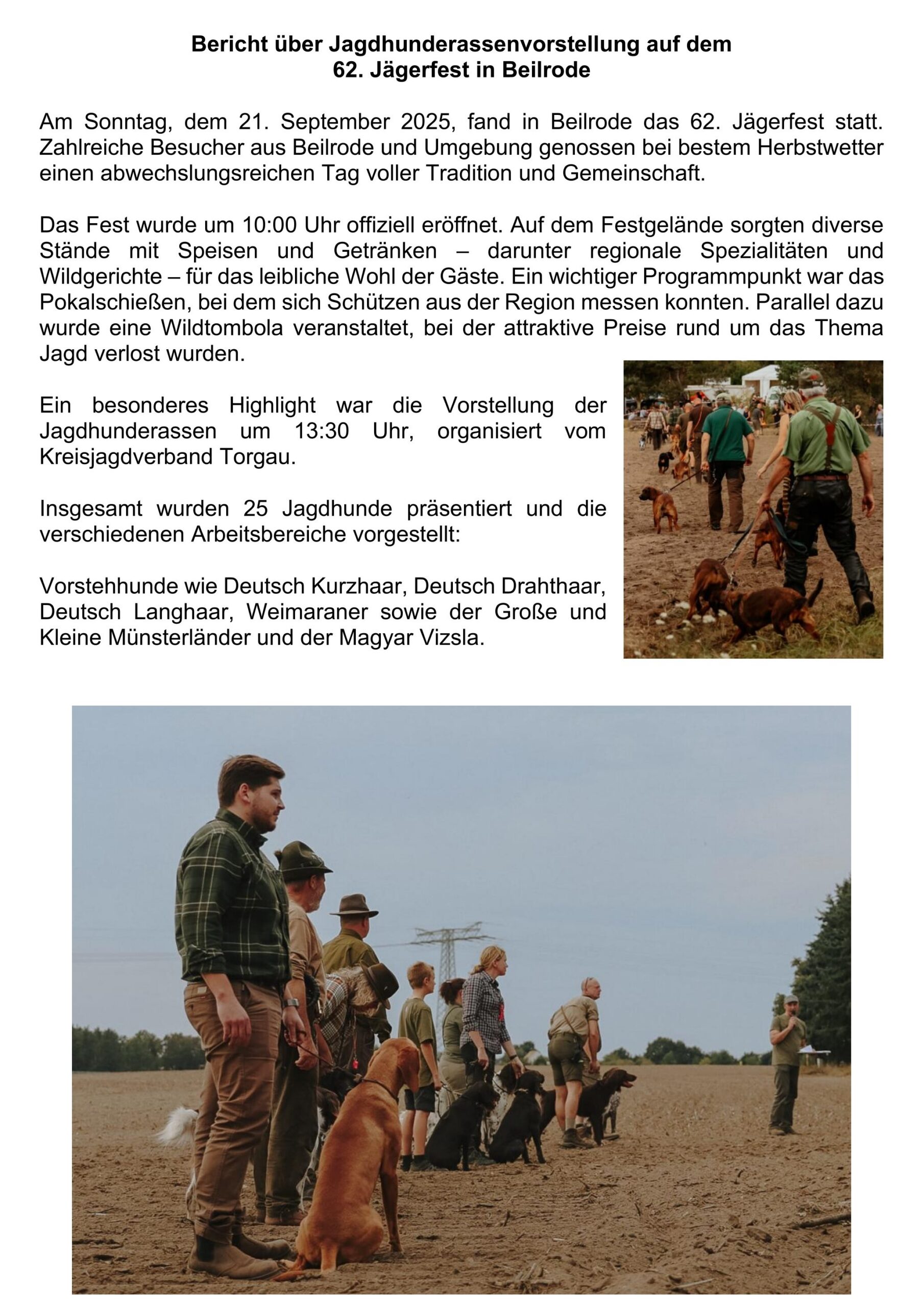 Jagdhunderassenvorstellung auf dem 62. Jägerfest in Beilrode